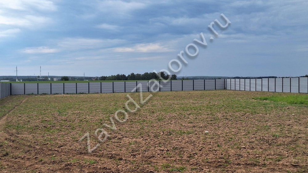 Садоводческое некоммерческое товарищество Победа-Тарасково, Наро-Фоминский городской округ, Московская область, бригада монтажников установила забор синего цвета из металлического штакетника.
