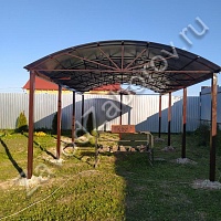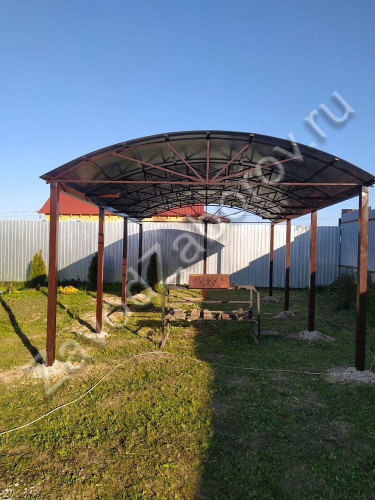 В деревне Ларюшино, Одинцовского городского округа, Московской области, установили навес для машины на дачном участке, крыша навеса выполнена из поликарбоната.